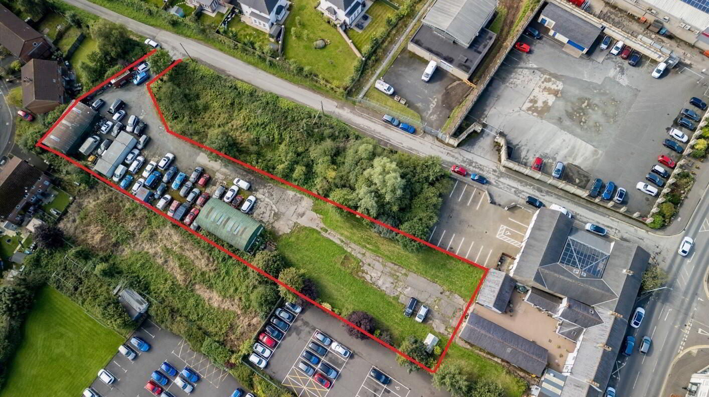 Commercial yard with development potential of approximately 0.71 acres to the rear of 37-43 Main Street, which are part leased by Moira Motors with the remainder vacant.