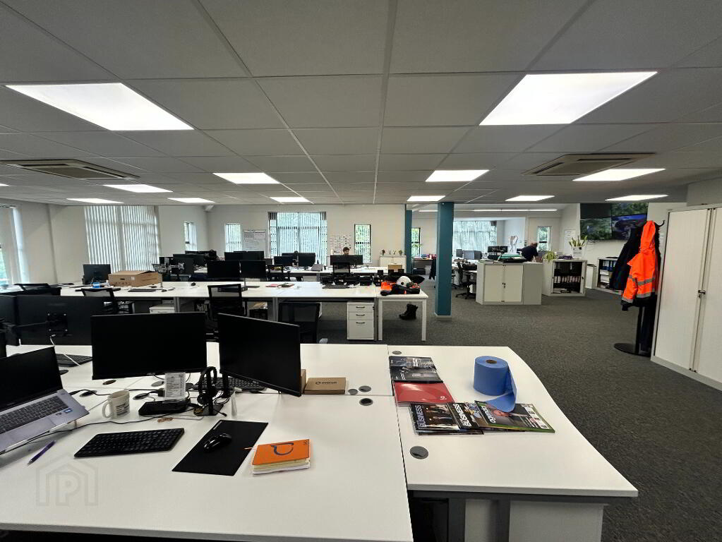 The offices are finished to a high standard to include suspended ceilings with recessed lighting and plaster painted walls and electric wall heaters. The upper floor has a number of air handling units.