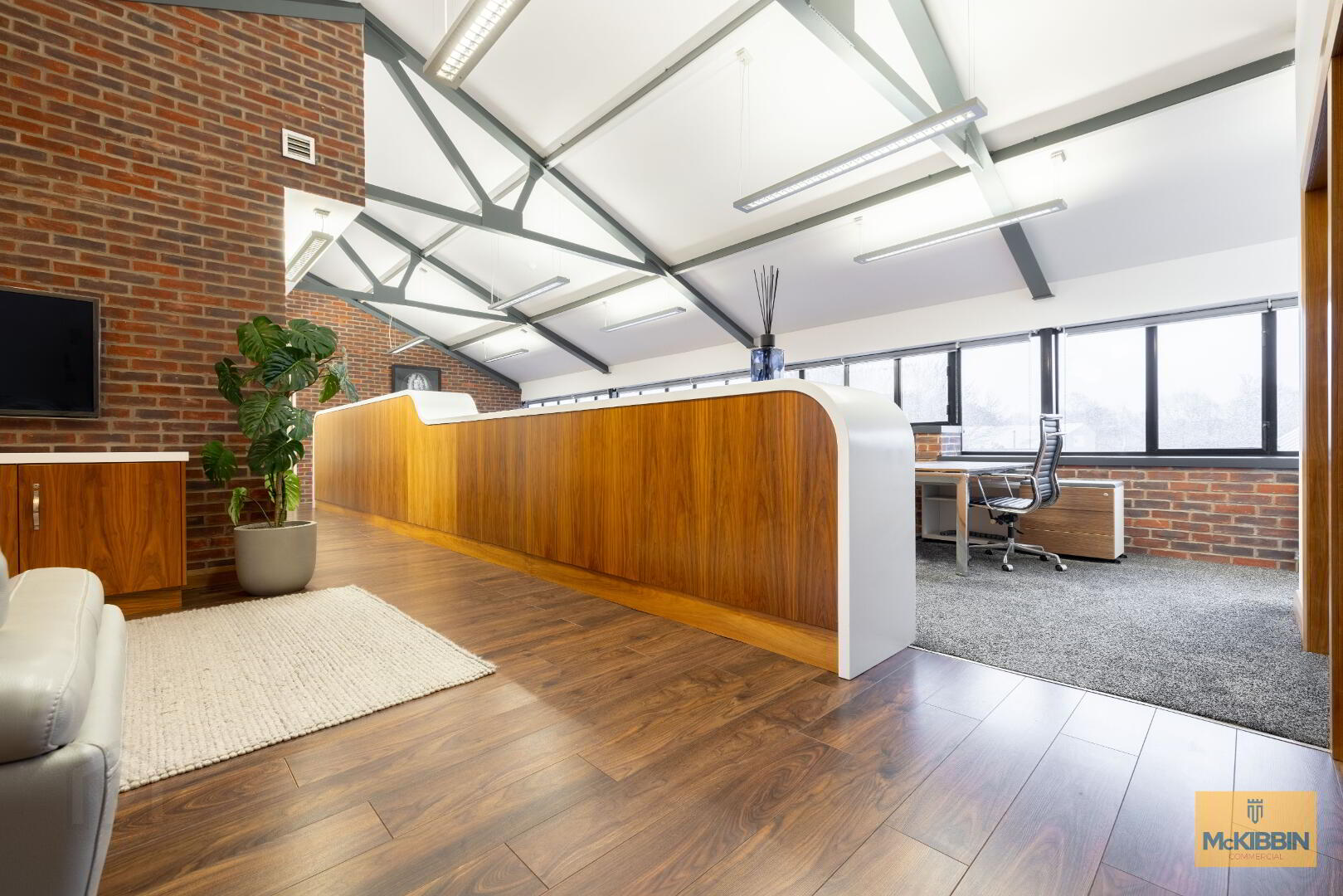 The office is bright and airy with an open floor plan and high ceilings, and is ready for immediate occupation.